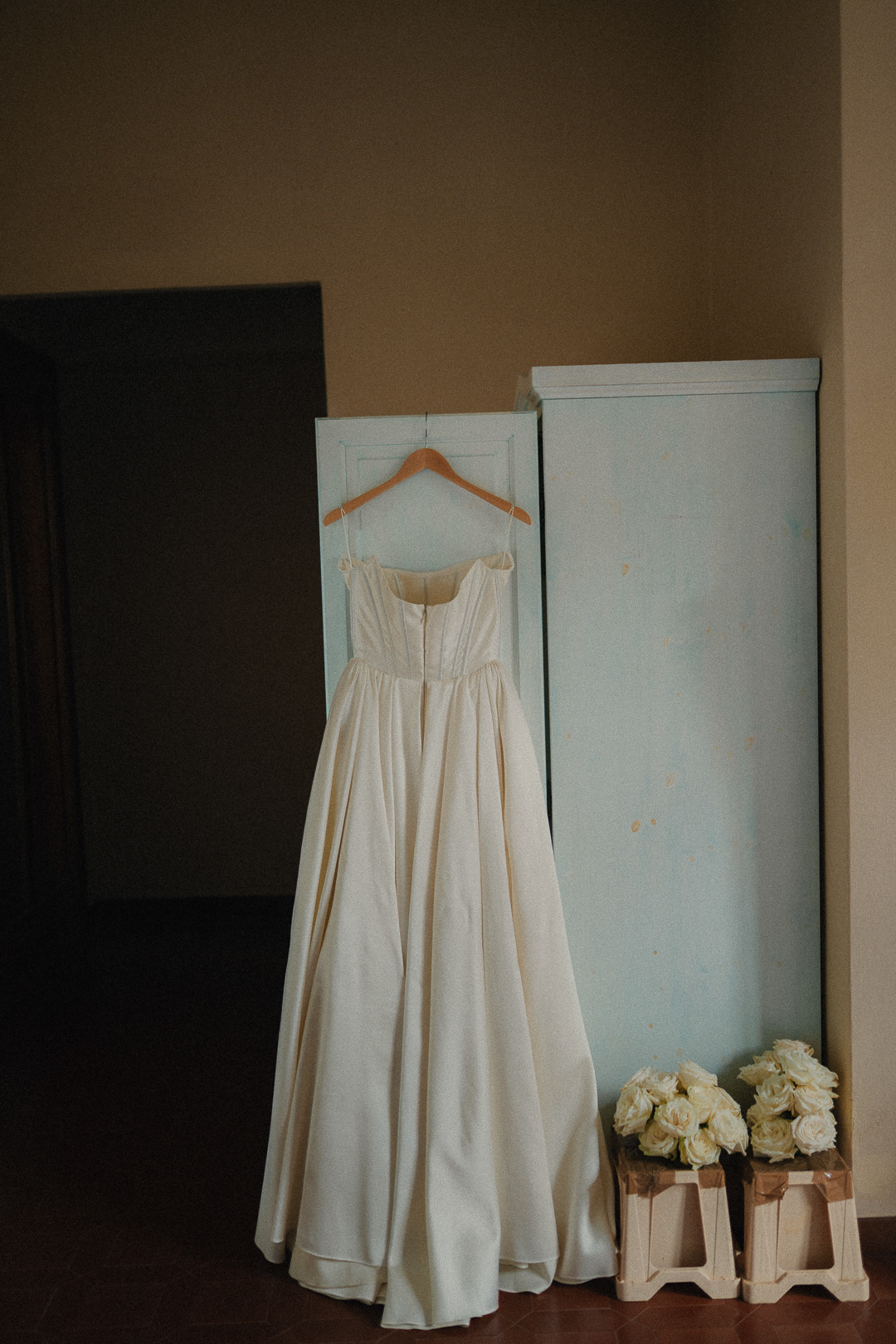 Fotografia di Arianna Macherelli, specializzata in Fotografia di Matrimonio, dettaglio di scarpe e abito da sposa