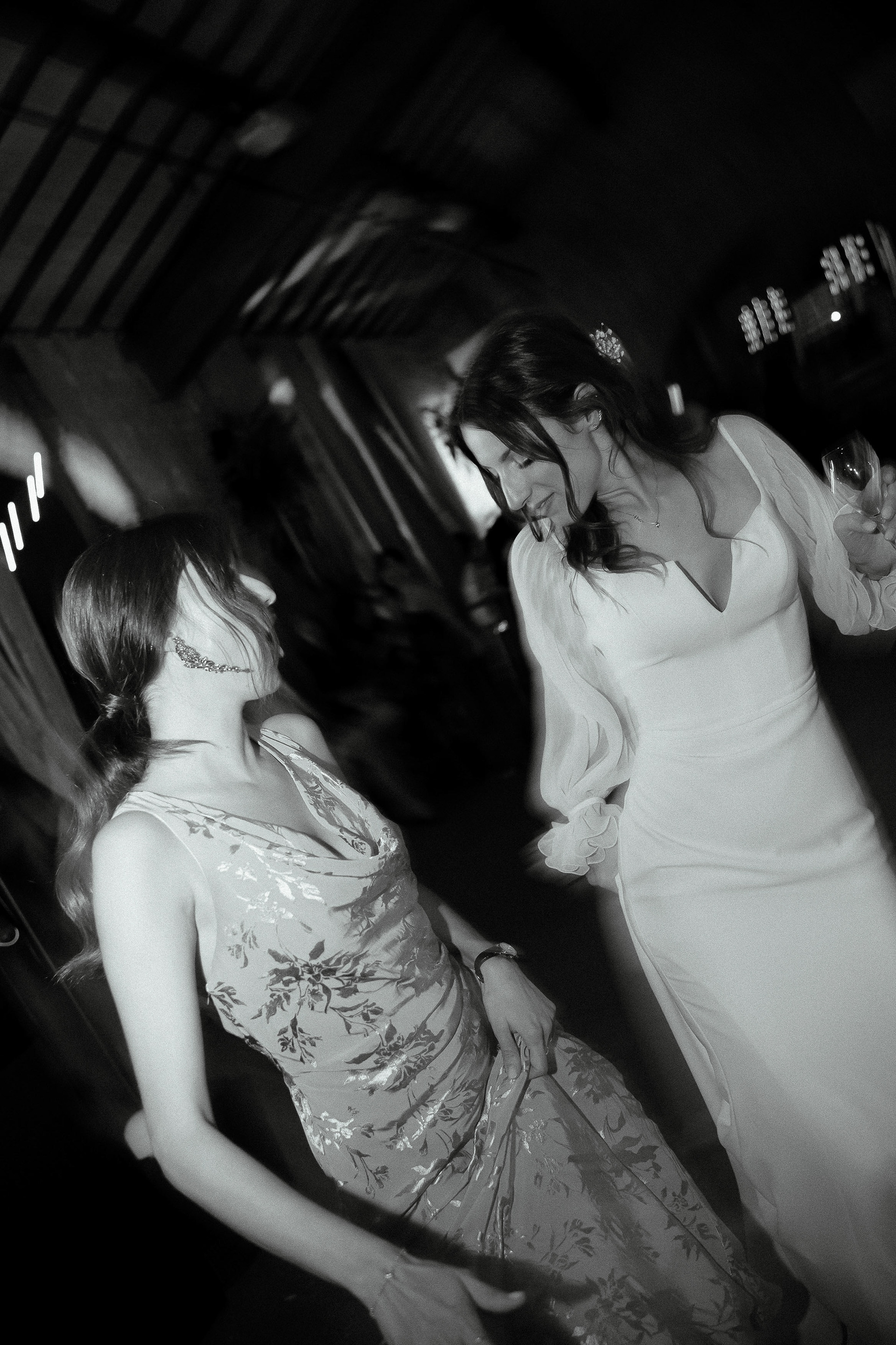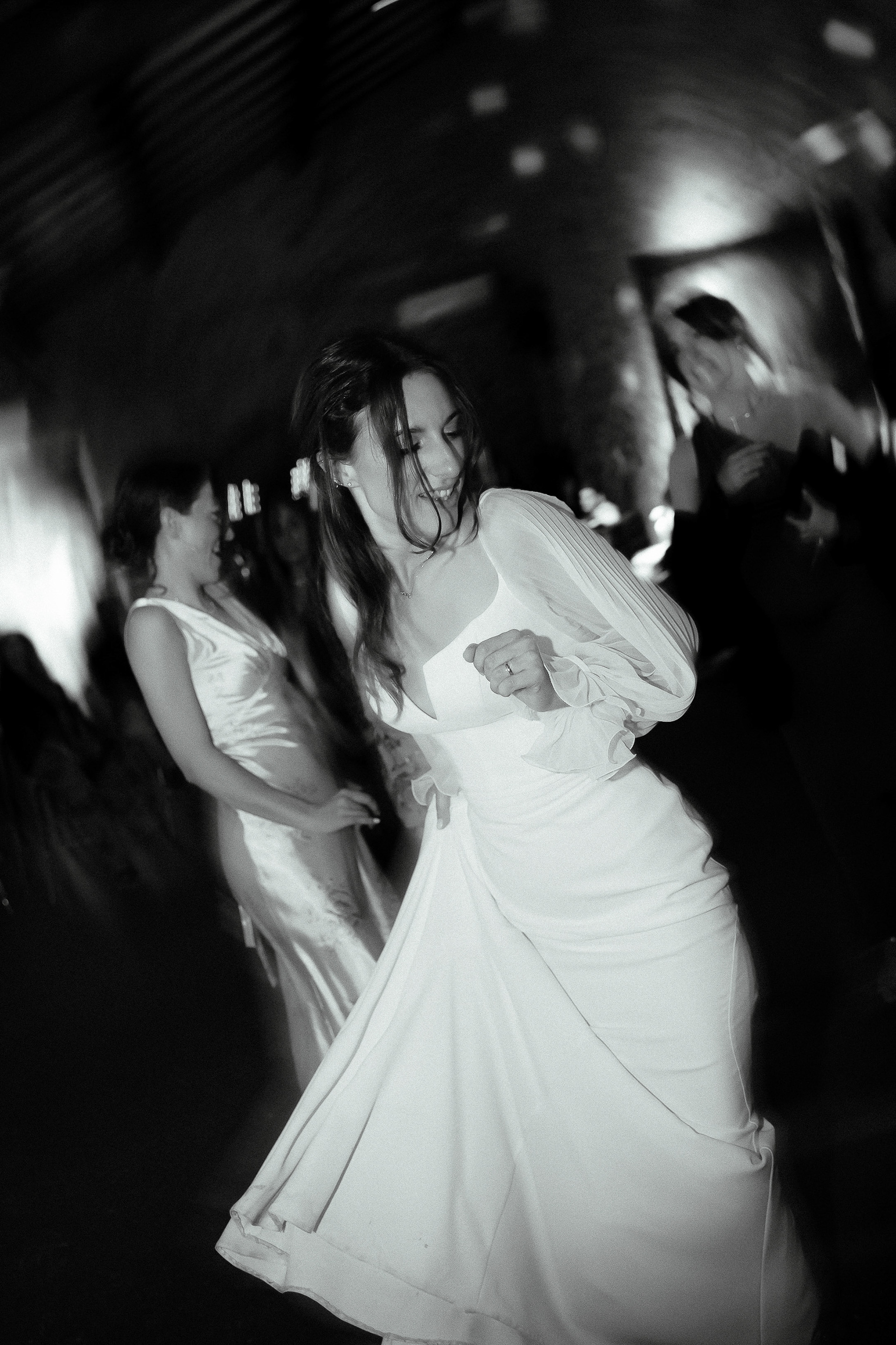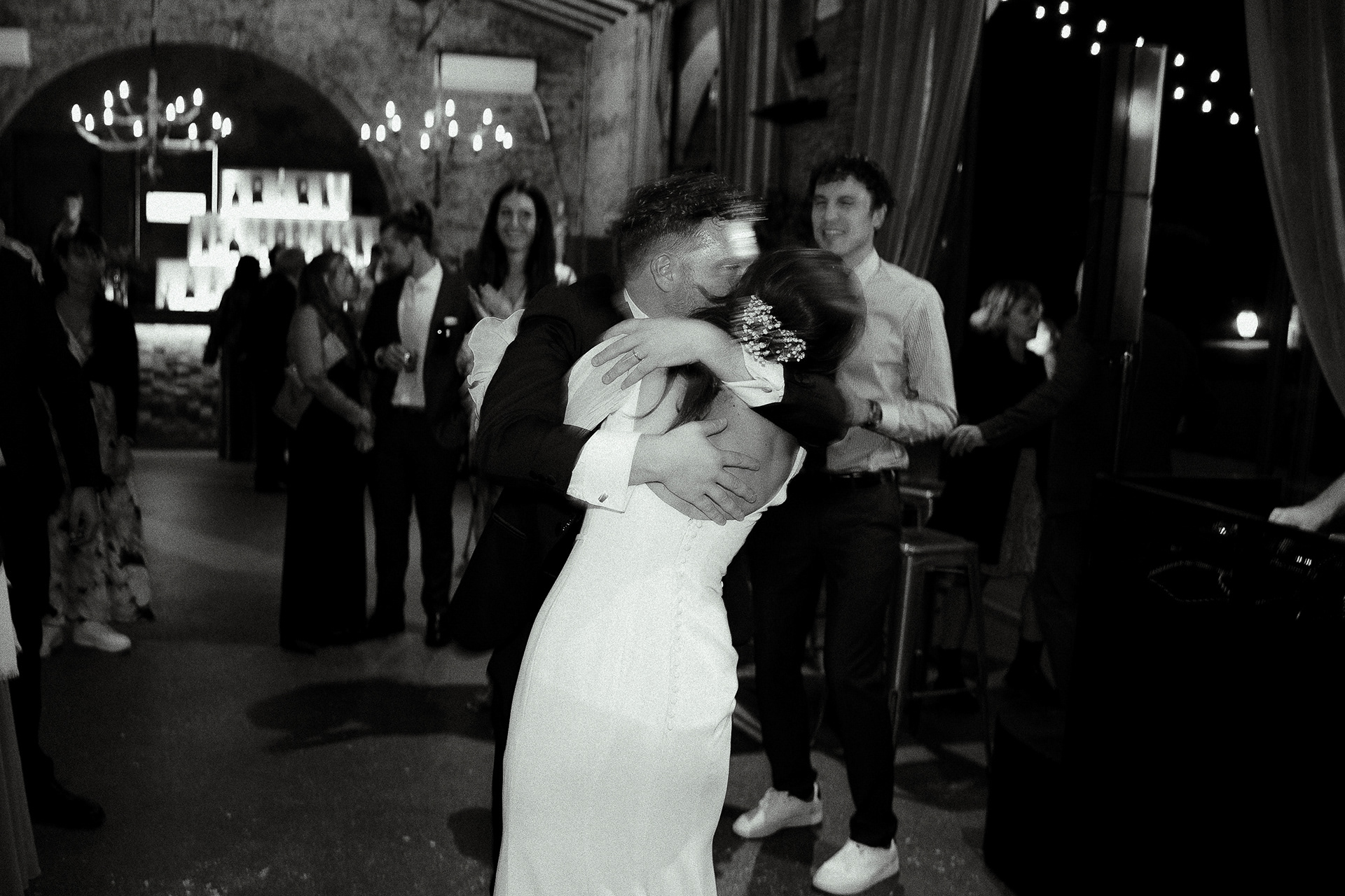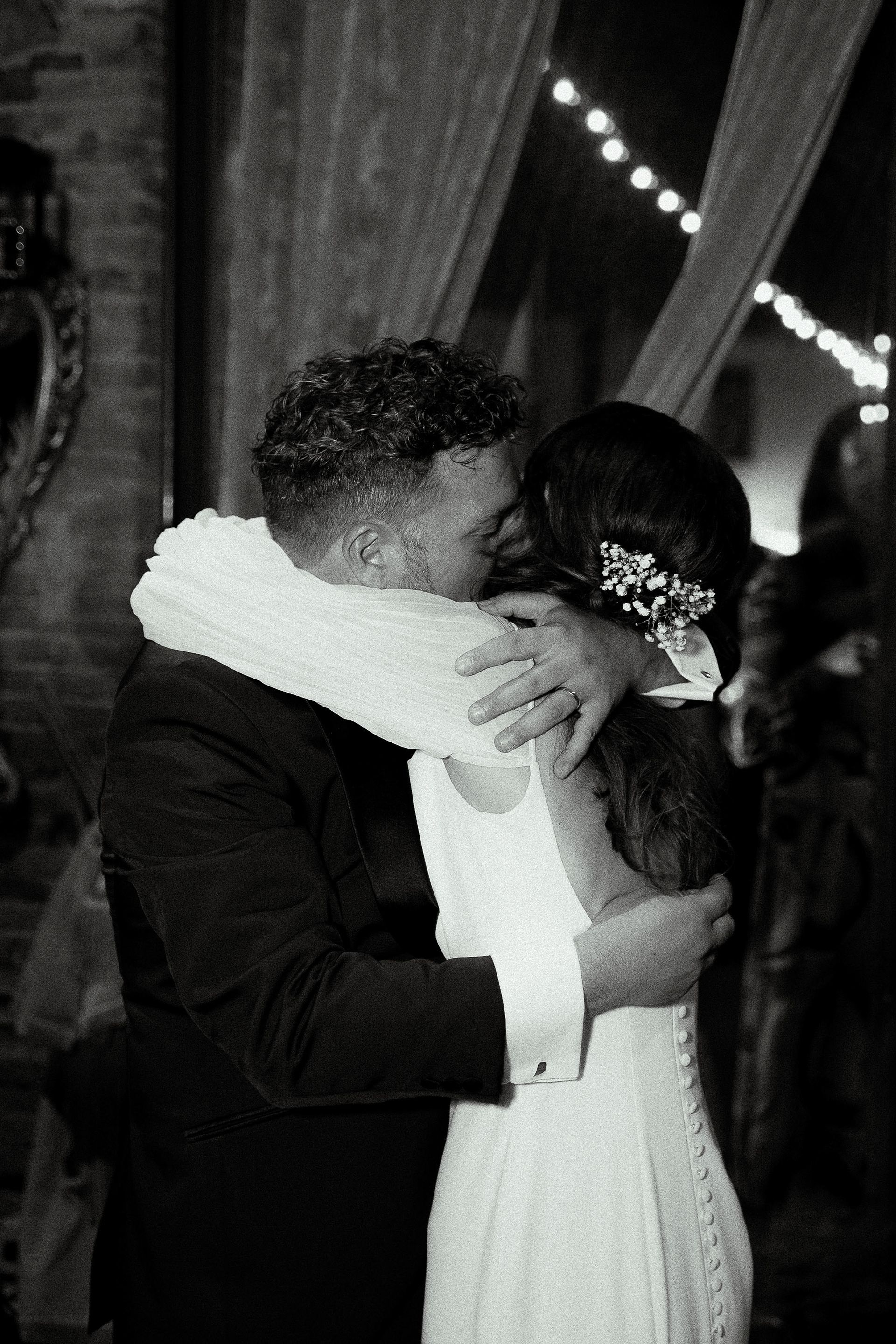 Fotografia di Arianna Macherelli, specializzata in Fotografia di Matrimonio, immagine in bianco e nero di due sposi che ballano in silenzio